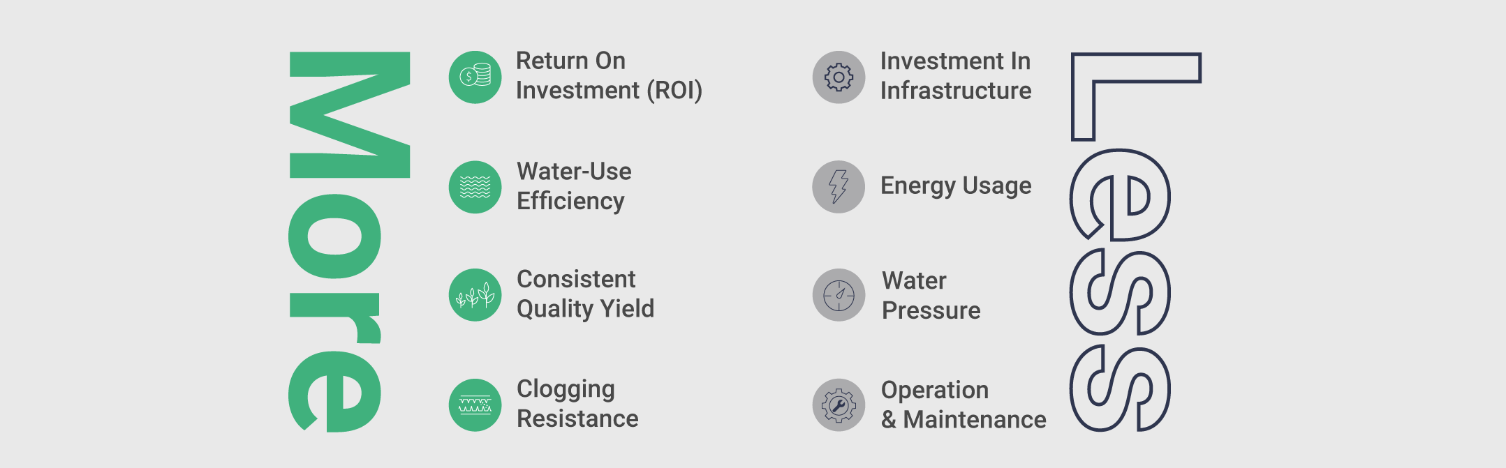 Netafim's Low Energy Drip System (LES) offers farmers an efficient and affordable irrigation solution, without the need for filtering or high power. Powered by gravity, Netafim's LES drip technology ensures uniform water distribution across the entire field.