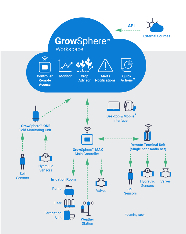 That’s why we created GrowSphere™ the first operating system (OS) for precision irrigation. A simple, intuitive and visual work tool that helps you plan and execute your irrigation plans with greater reliability, transparency, and less effort.
